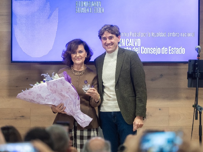 Eider Gardiazabal, presidenta de la Fundación Ramón Rubial, que coorganiza los premios junto a la Asociación Trece Rosas Rojas de Barakaldo, que preside Marisa González, ha señalado que “ningún avance, tampoco los relacionados con la igualdad, está asegurado y no podemos bajar la guardia”. “No podemos bajar la guardia. Debemos seguir trabajando todos los días sin descanso. Porque la igualdad no va a avanzar sola, necesita que la acompañemos”, ha asegurado. Y ha felicitado a la Asociación Animalista Lagunak y a Loli García, la Secretaria General de CCOO Euskadi entre 2017 y 2025, que han compartido con Carmen Calvo los galardones en esta edición.
