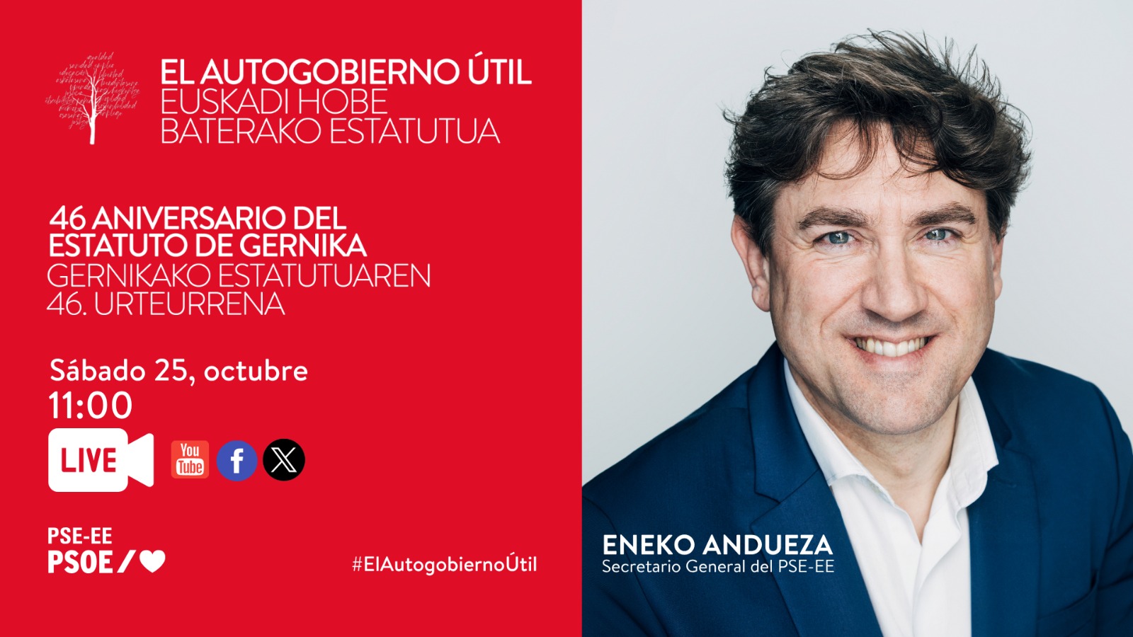El Secretario General del PSE-EE, Eneko Andueza, en el 46º aniversario del Estatuto de Gernika